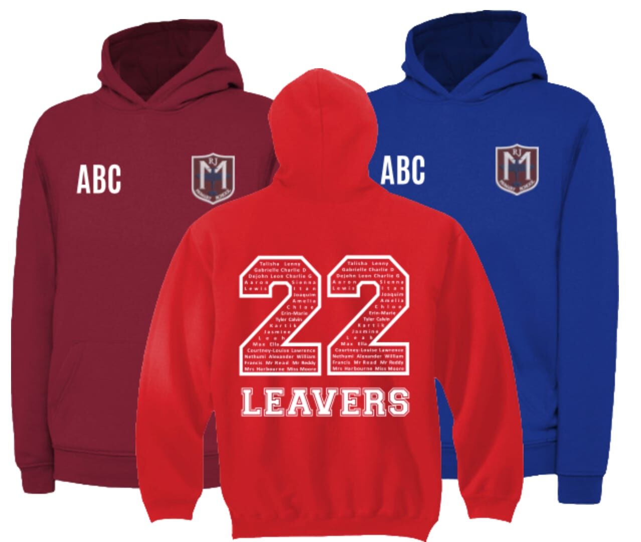 The parents of RJ Mitchell Primary School have put together a range of leavers hoodies there are 5 different colours to chose from and the option to perosnalise.